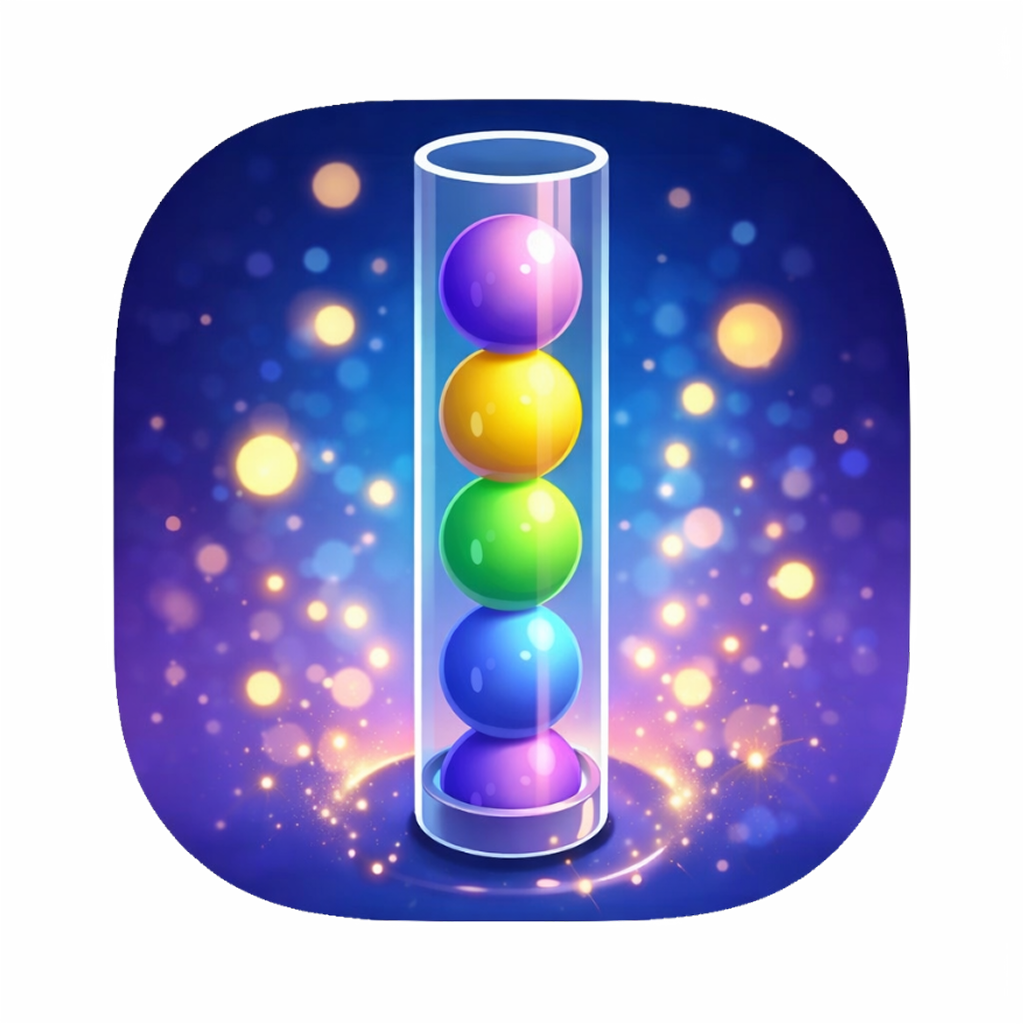 The user interacts with the system by initiating the transfer of the topmost items between vessels. The operational goal dictates that the user must manipulate the positions of the spherical objects until each discrete vessel isolates a single, uniform color. The application applies specific logic to these transfers, requiring the user to adhere to strict spatial and chromatic rules during the relocation process.